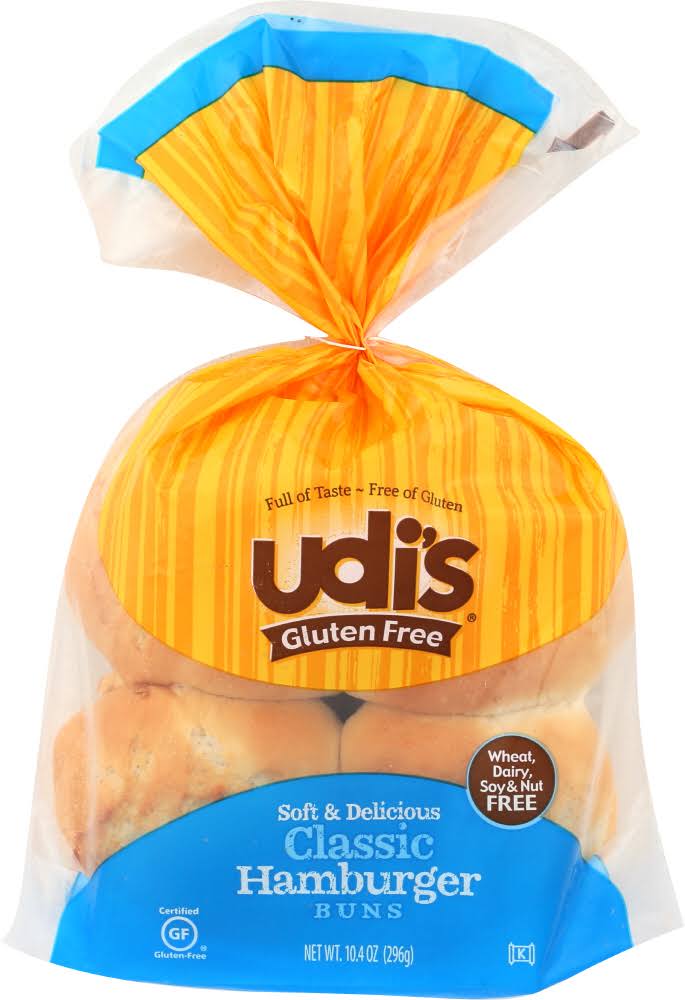 Choose from 100 Gluten Free brands online. Udis Gluten Free Buns Classic Hamburger - 104 Oz. Udis Gluten-Free is a food manufacturing company that specializes in gluten-free products.